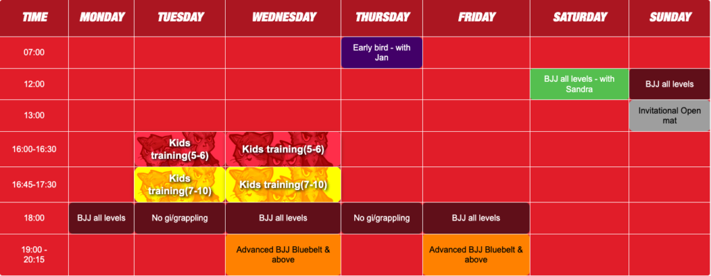 Training schedule